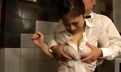 Maid's boobs and nipples squeezed hard by owner...