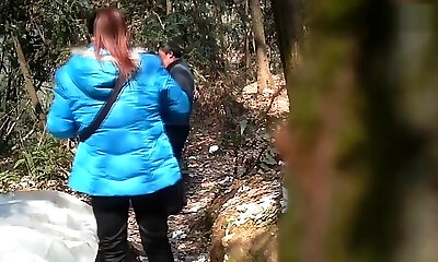 Chinese couple fucking in public park