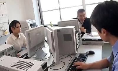 japanese MILF fucked by her old manager at work next to other colleagues !