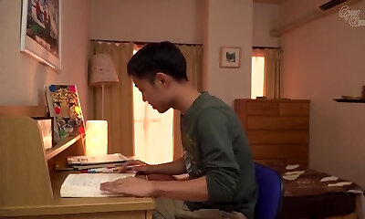 Asian Mature caught Young Guy Wank with her Thong and help him with Blowjob