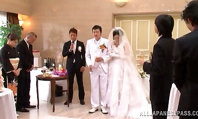 Chinese bride Emi Koizumi gives a good blowjob after wedding